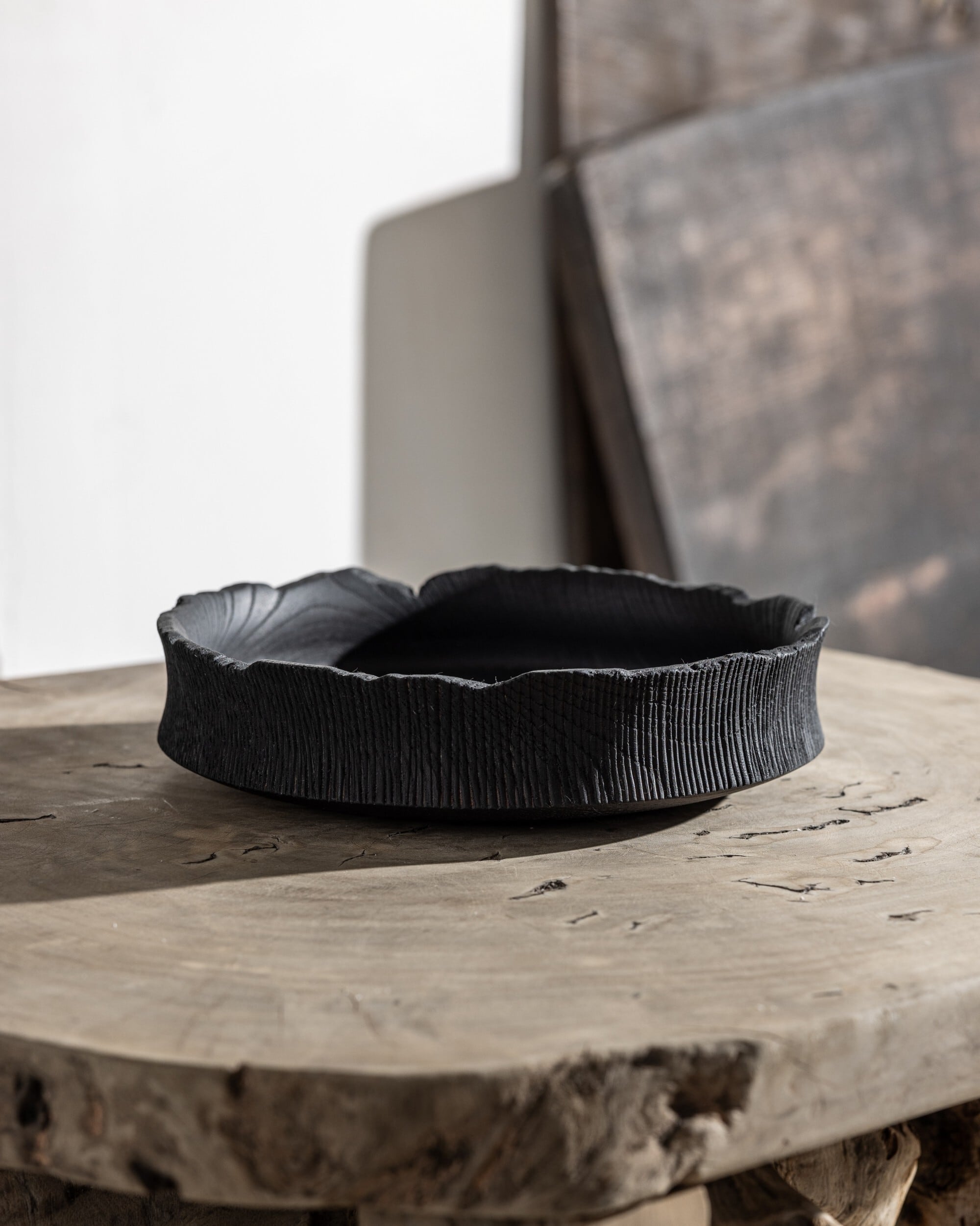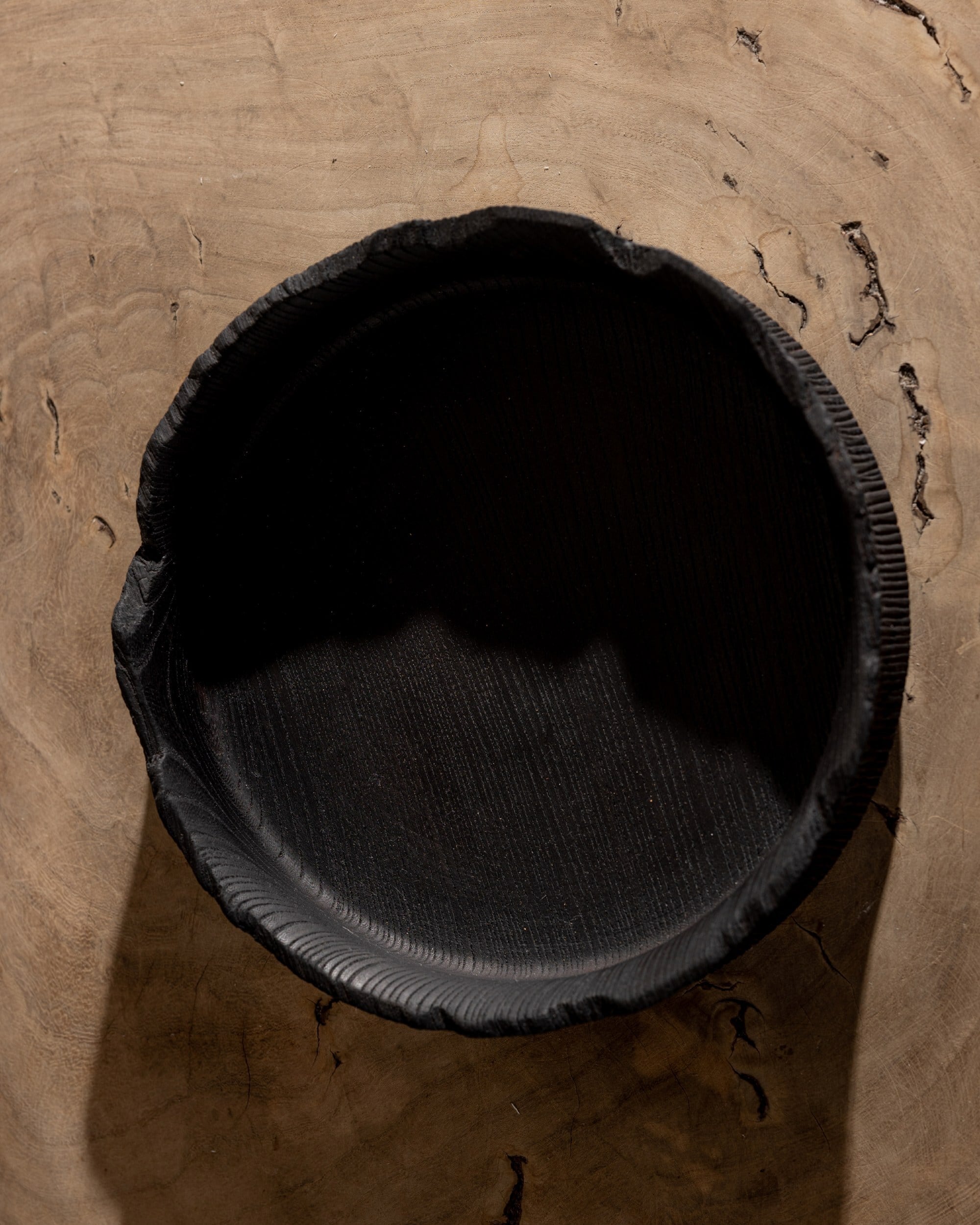 Jomon trayは、縄⽂時代の「押引紋様」からインスピレーションを得てデザインしています。ひとつひとつ異なる木の色合いや木目、および繊細な彫刻文様は、まるで自然が描いたアート作品のような存在感があります。稀に見られる割れや不完全さは、自然の風合いとして受け入れていただくことで、より一層の愛着が湧くことでしょう。あなたのライフスタイルを豊かに彩る、特別な存在としてぜひお取り入れください。