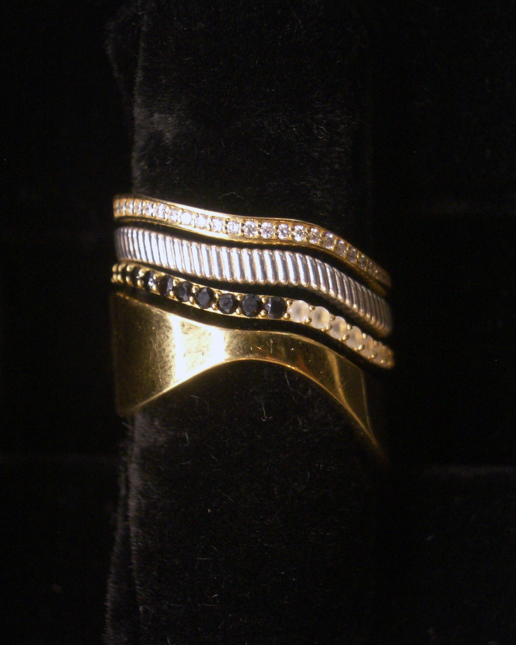 表面に刻まれた繊細な縦の彫りが、光を受けるたびに陰影を生み出し、深みのある表情を演出します。
