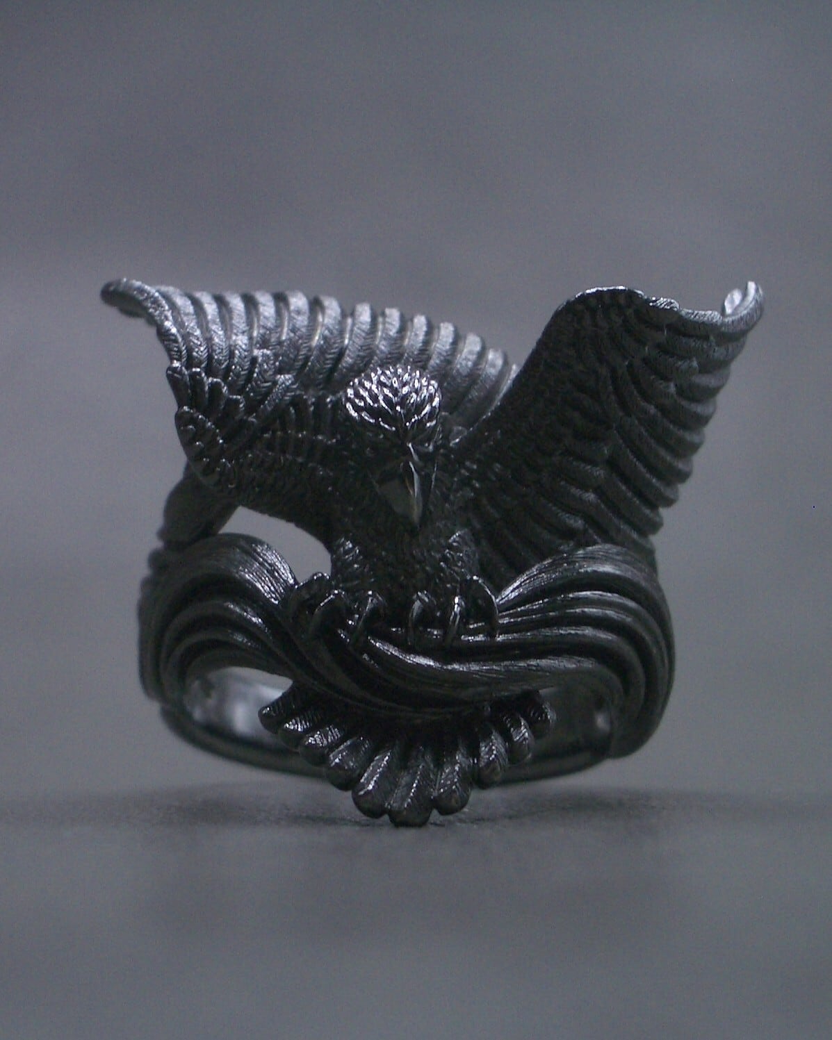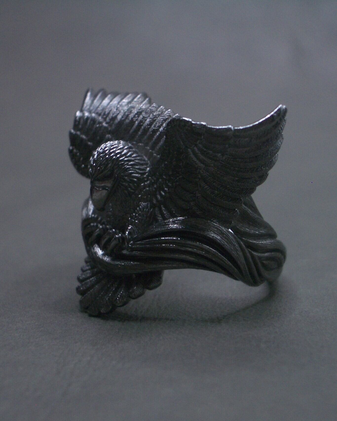 羽音を閉じ込めたリング / 鷹 Silver925 (Black Plating)