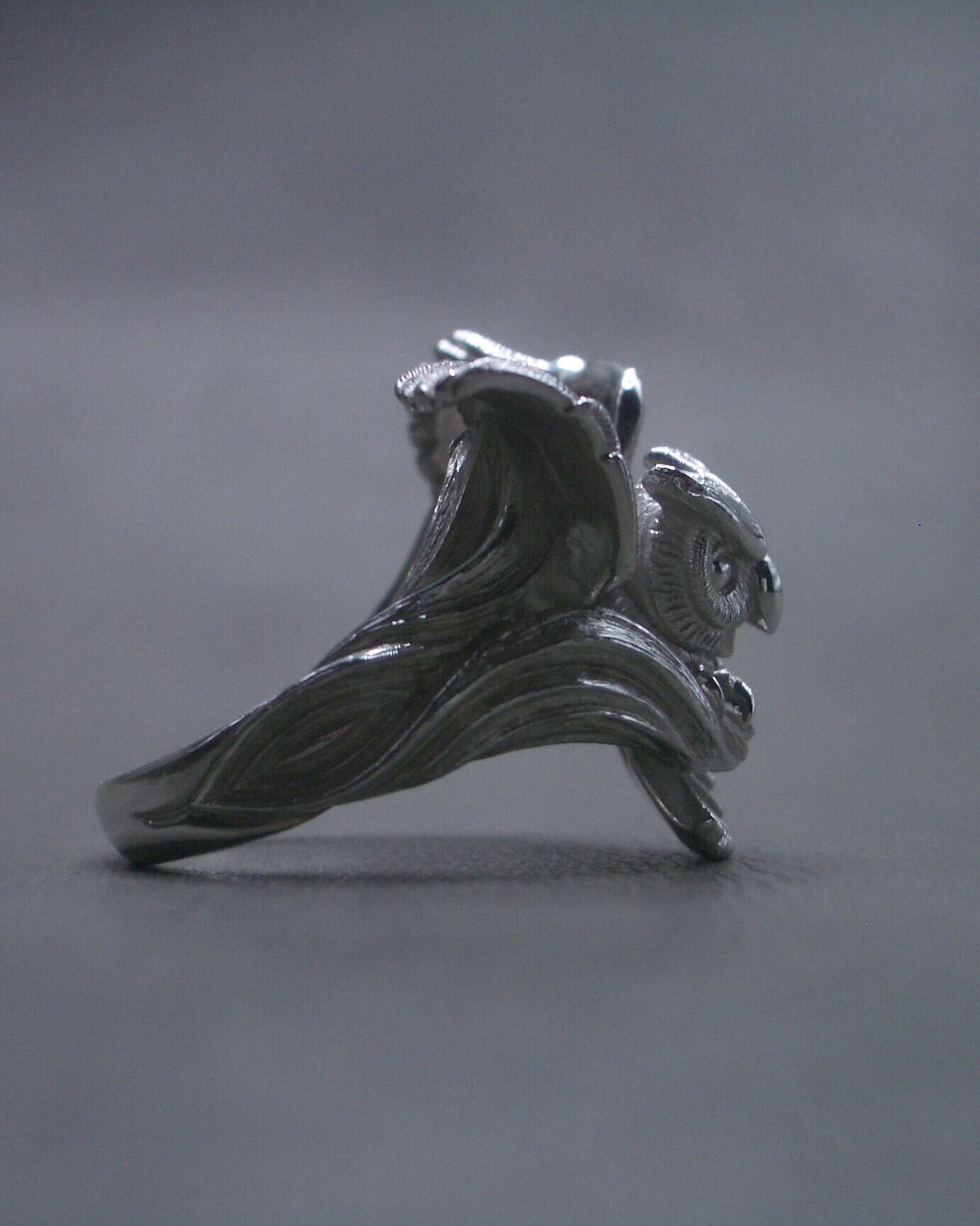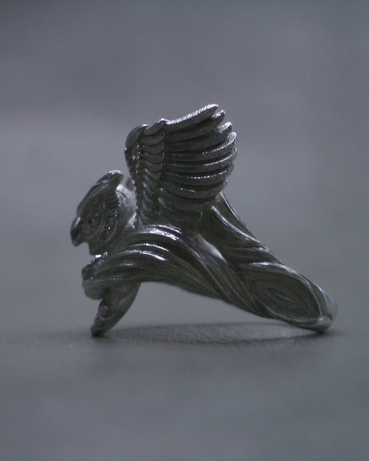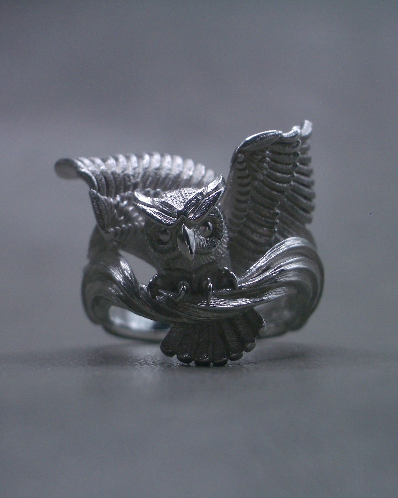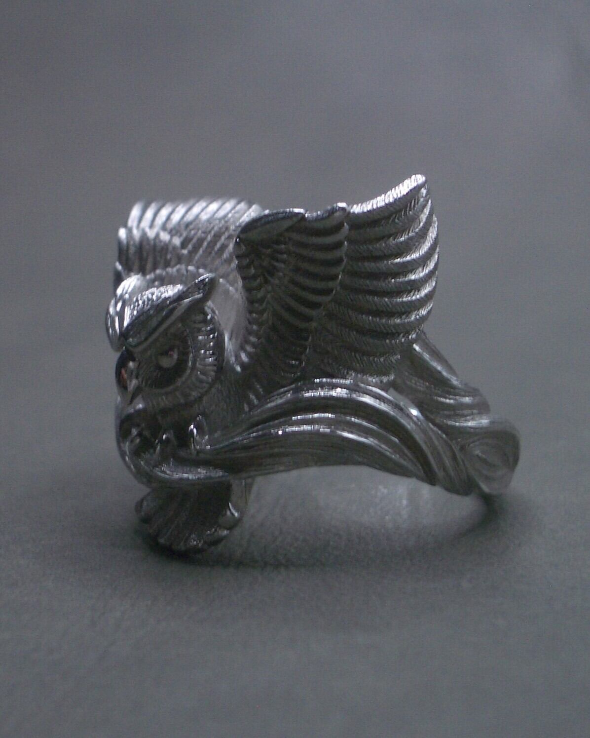 羽音を閉じ込めたリング / 梟 Silver925 (Rhodium Plating)