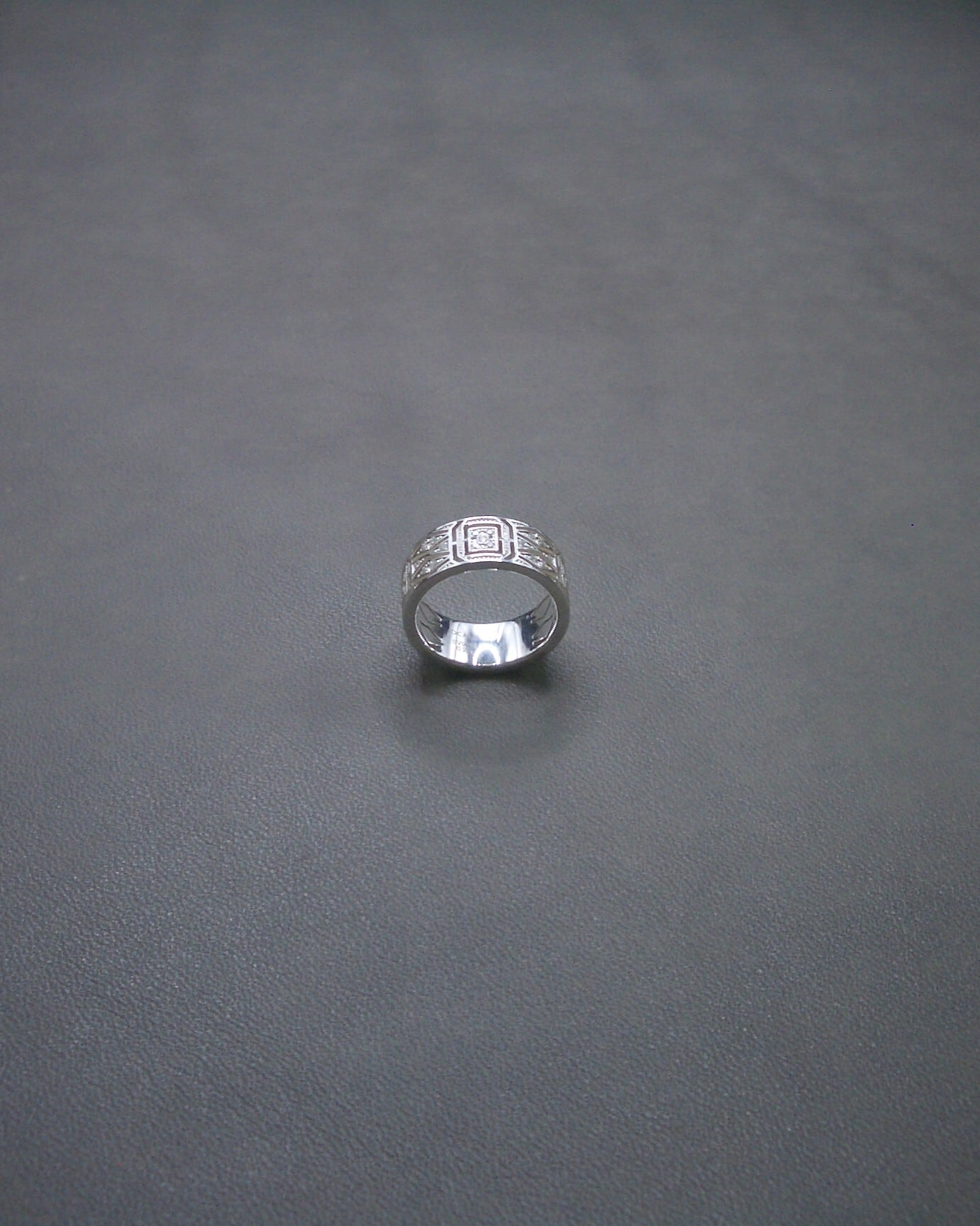 石だたみのように規則正しく並ぶラインの中に、ダイヤモンドを敷き詰めた静謐な輝きが宿る一品です。