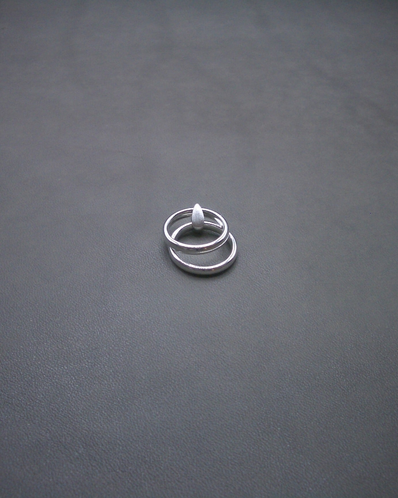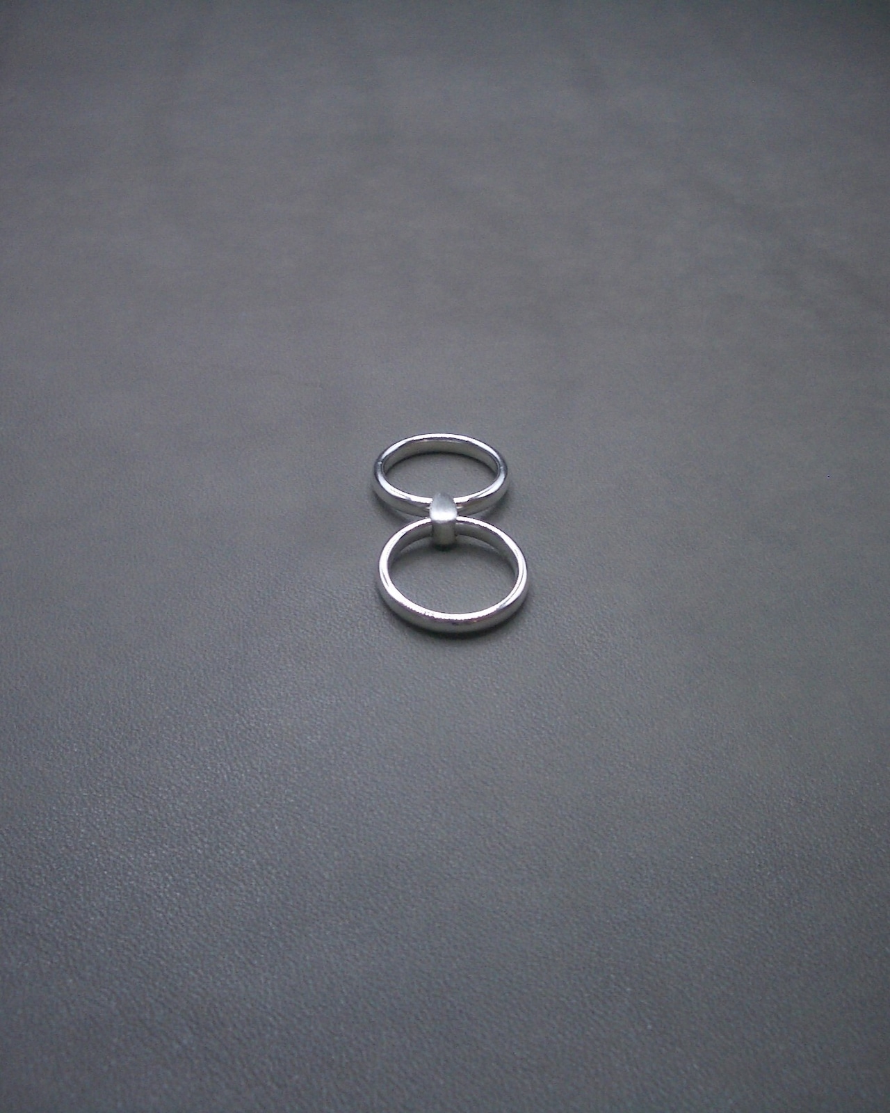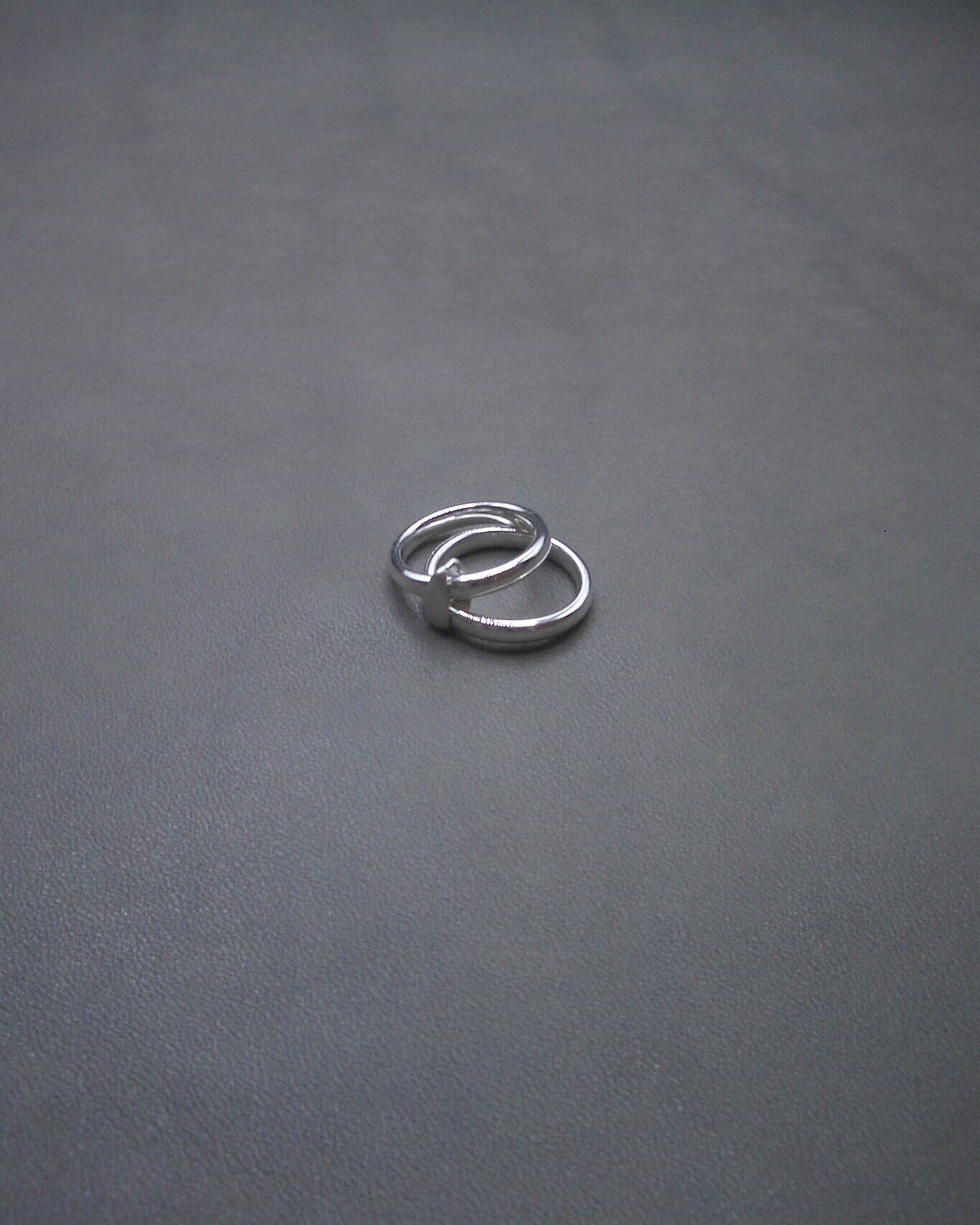ダブルリングとしても、一つだけ指に入れあと一つをぶら下げるように使用することもできる2WAYタイプです。