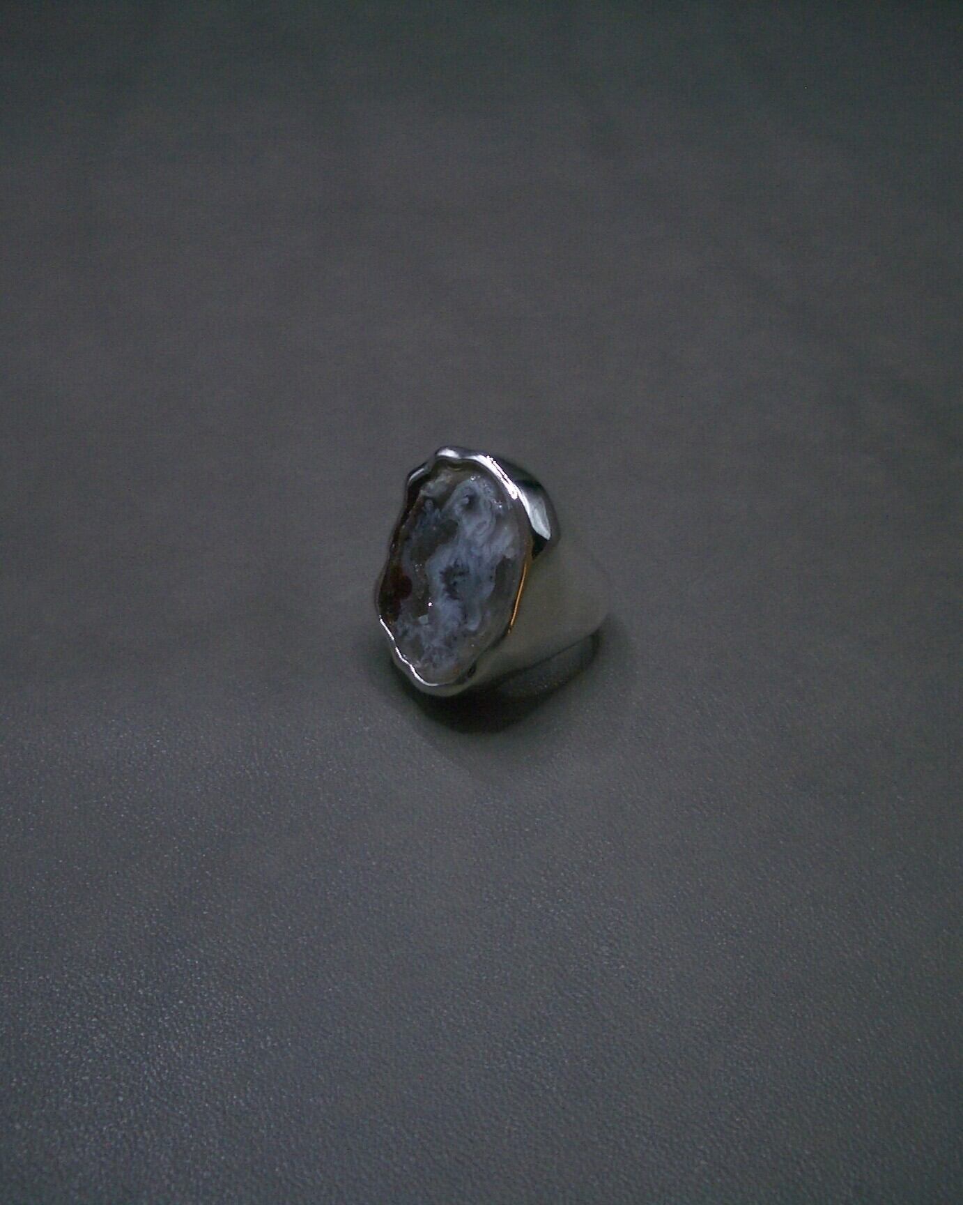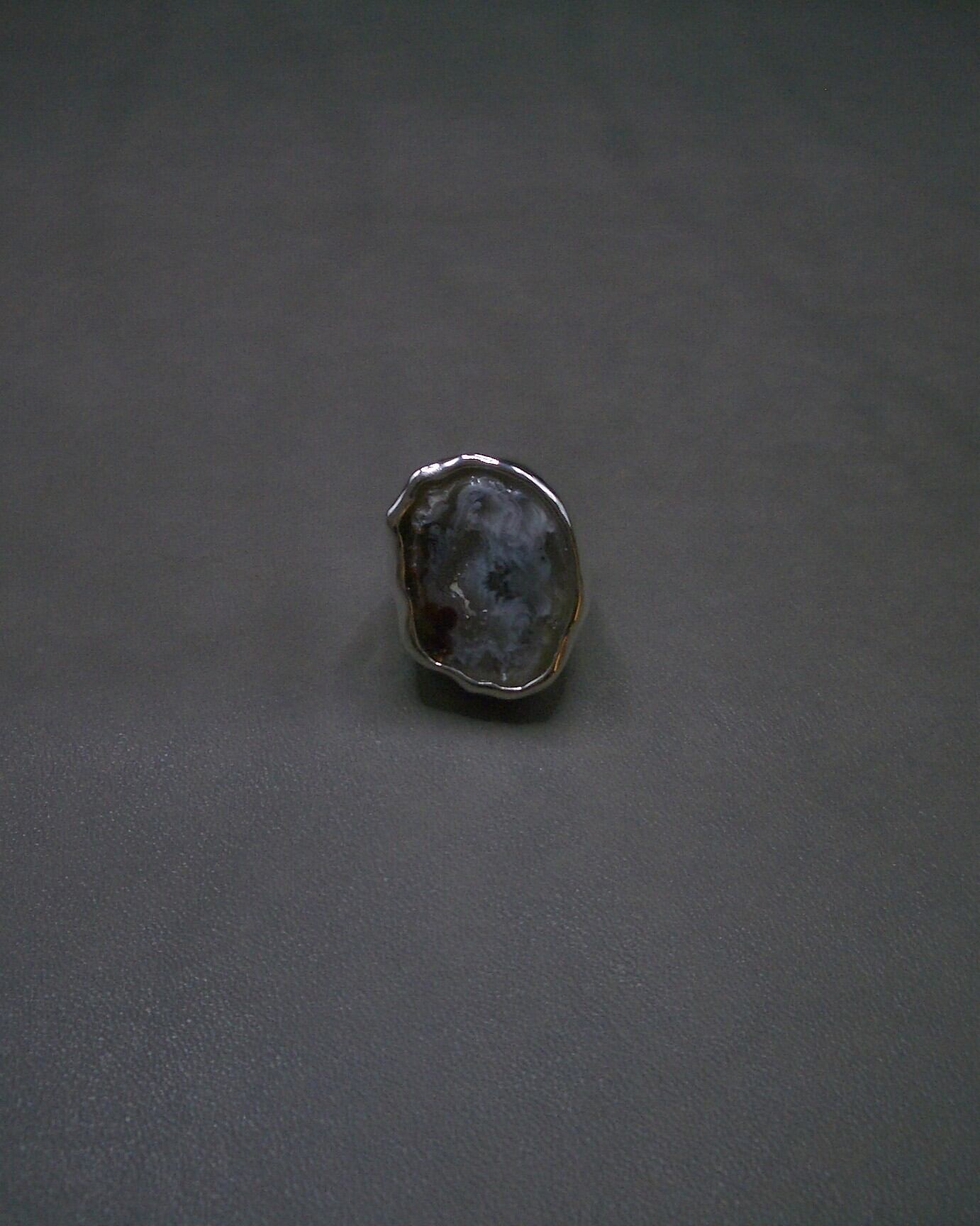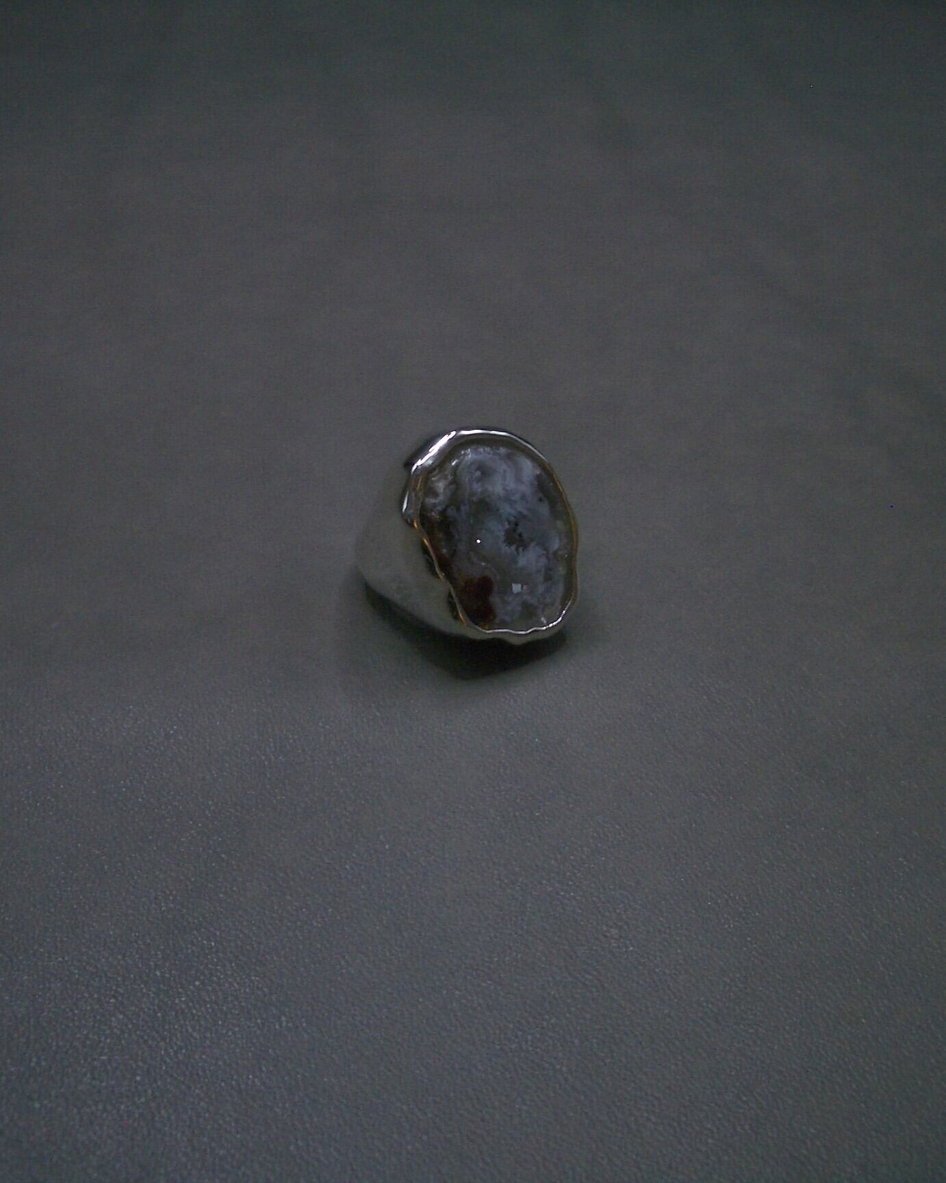 瑪瑙の原石(加工前の自然な状態の石)を使用した、自然が作った美しい縞模様が特徴のリングです。